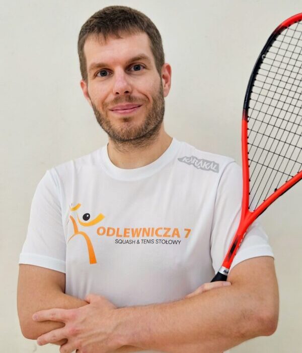 Trener z certyfikatem Europejskiej Federacji Squasha ESF Level 1. Mistrz Polski Masters 2019. Prowadzi zajęcia dla graczy na każdym poziomie. Dostępny w poniedziałki i czwartki po południu.